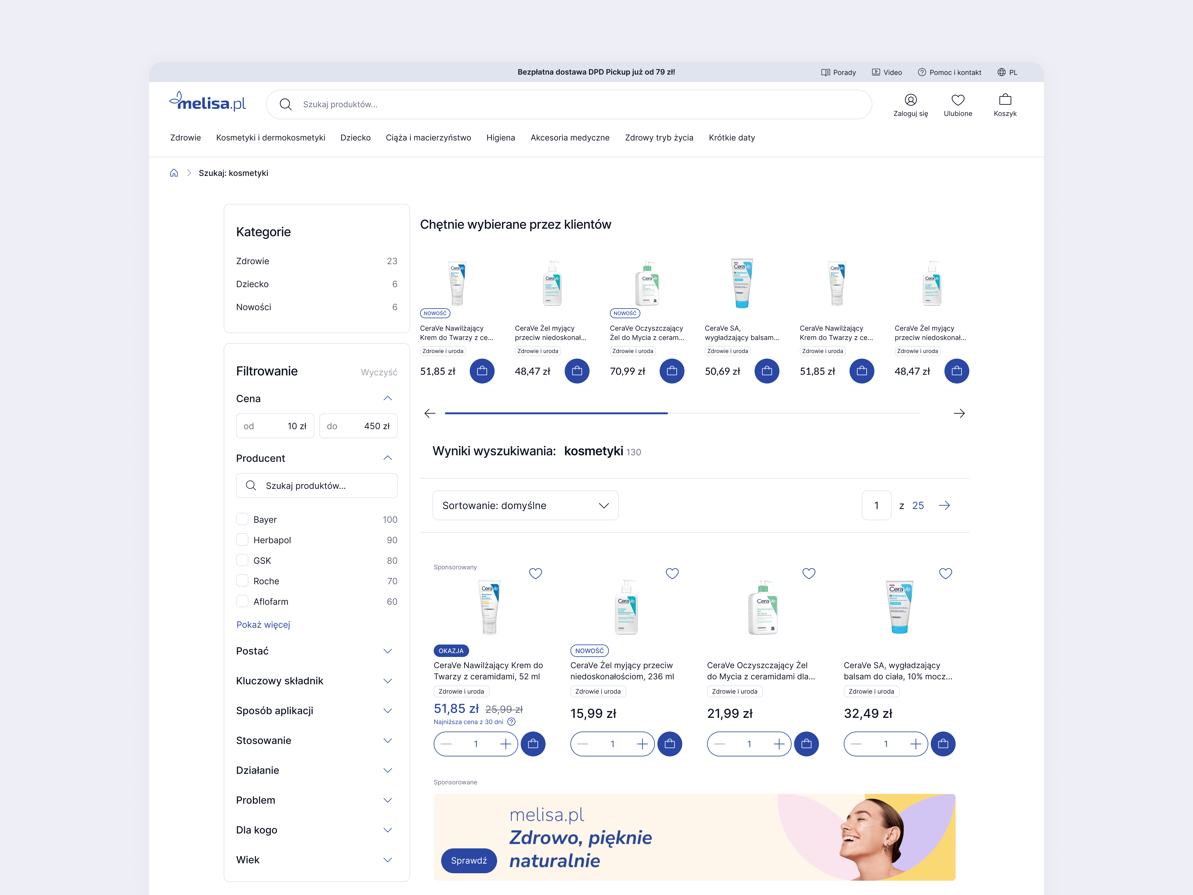 Melisa.pl to jeden z największych e-commerce’ów w kategorii health & beauty w Polsce – z ponad 1,5 mln użytkowników miesięcznie.