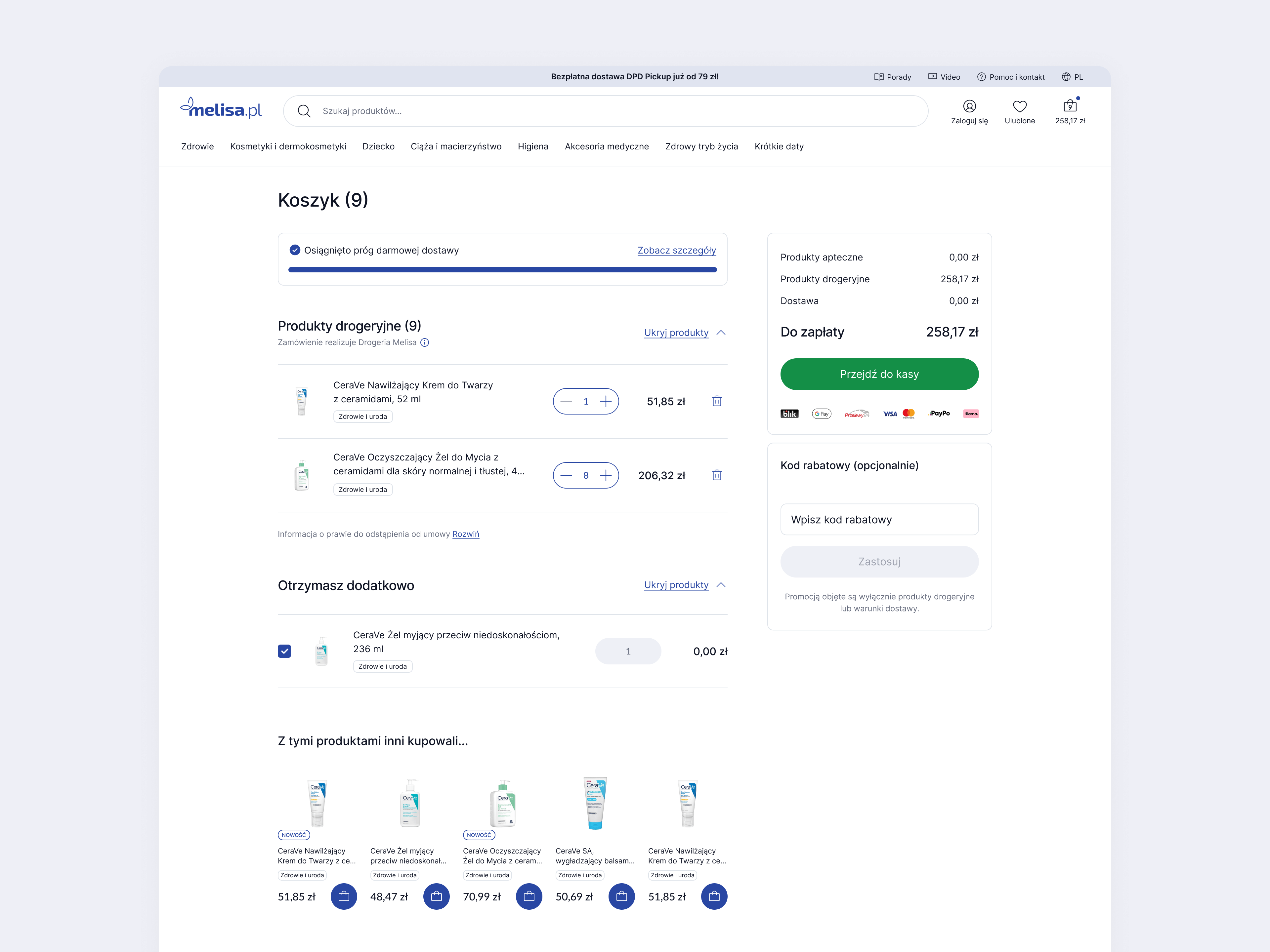 - Nowy model sprzedaży — połączenie możliwości zakupu produktów aptecznych i drogeryjnych na jednej platformie, bez konieczności ręcznego przechodzenia na stronę apteki, z zachowaniem standardów bezpieczeństwa danych.