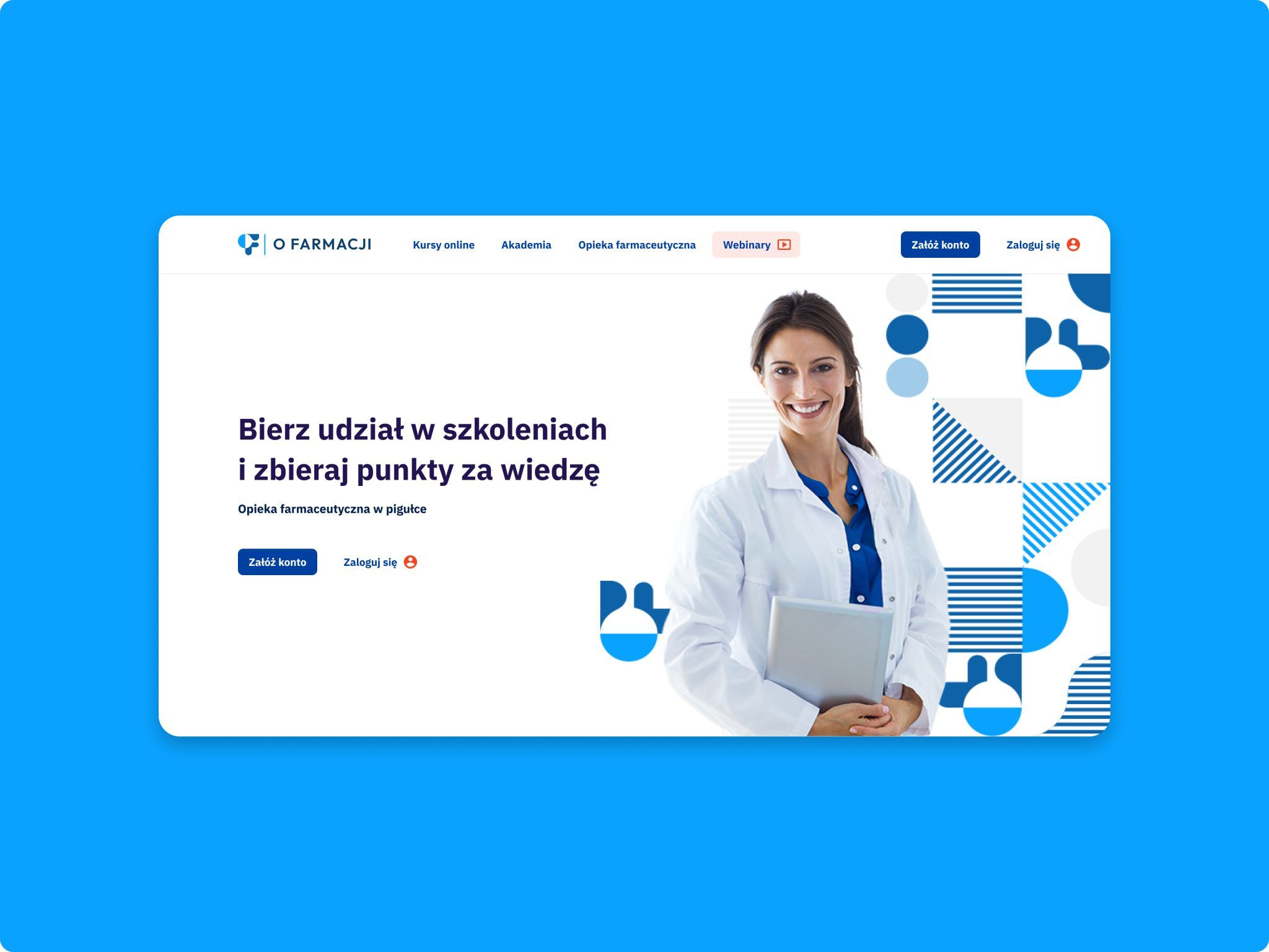 O Farmacji is a modern e-learning platform designed for pharmacists seeking to expand their knowledge, earn continuing education points, and participate in professional online activities.